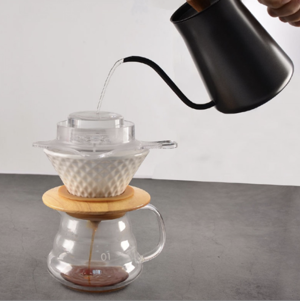 تعتبر B مثالية للصب اليدوي لتوزيع المياه فوق البن المطحون، مما يقلل الجهد المبذول أثناء تحضير القهوة بجودة عالية.