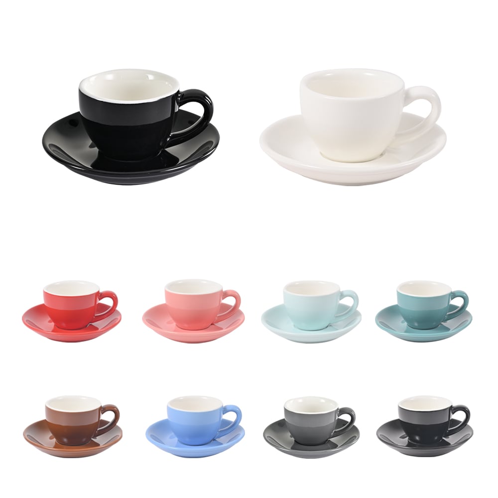 كوب اسبريسو نيت مصنوع من اجود انواع السيراميك ومع صحن يسهّل عليك حمل الكوب. يتميز الكوب بتصميم عصري وسهل بالشرب ويعطي شكلا جميل لكوب الاسبريسو الخاص بك.