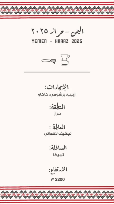 تعد منطقة حراز في اليمن أحد أشهر و أعرق مناطق زراعة القهوة في العالم. تتميز منطقة حراز بتضاريس جغرافية جميلة وظروف جوية ومناخية مناسبة لإنتاج ومعالجة أجود المحاصيل حول العالم. تقع حراز في مرتفعات جبلية شاهقة تصل إلى 2500 م فوق سطح البحر مما ينعكس إيجاباً على خصائص القهوة ونكهاتها