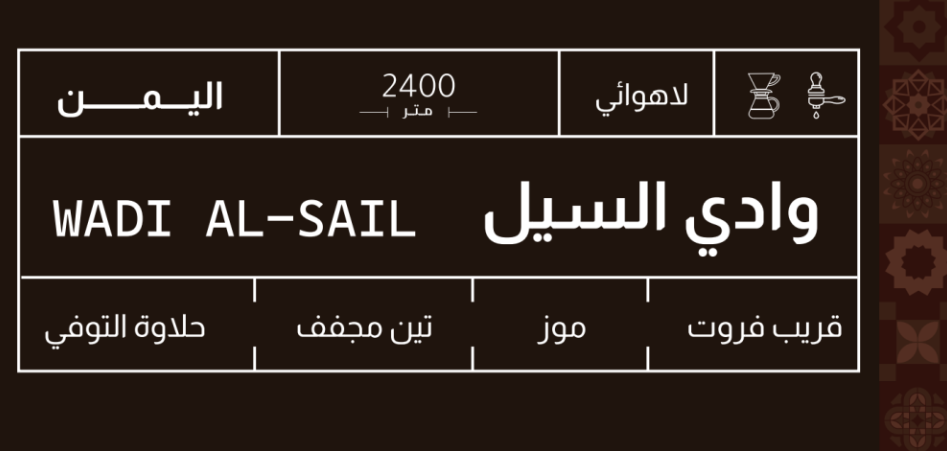 تتميز قهوة وادي السيل بإيحاءات غنية ومميزة، حيث تمزج بين نكهات قريب فروت، الموز، التين المجفف، ولمسة من حلاوة التوفي. هذا التناغم الرائع بين النكهات يجعل من كل رشفة تجربة فريدة من نوعها تُرضي جميع عشاق القهوة الفاخرة.